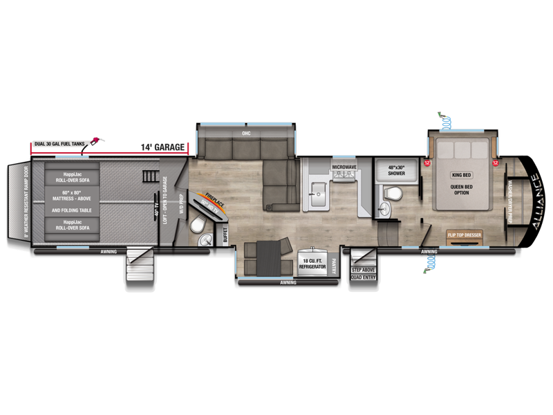 You have family, toys, gear and the intense personal desire to explore the outdoors. Courageously take adventure head on with the most versatile multi-zone living vehicle designed by RVers for RVers. Valor by ALLIANCE RV is packed with adventure-ready quality equipment for the extreme journey from performance running gear to the coolest HVAC system on the market.