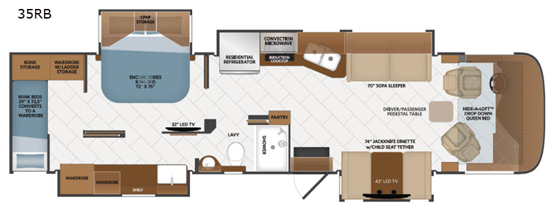 New RVs is not responsible for any misprints, typos, or errors found in our website pages. Any price listed excludes sales tax, title, freight and pre-delivery inspection. Savings percentage based on Manufacturers Suggested Retail Prices for select models for in-stock units. Motorized units available at selected locations. Manufacturer pictures, specifications, and features may be used in place of actual units on our lot. Please Contact Us for availability as our inventory changes rapidly. All calculated payments are an estimate only and do not constitute a commitment that financing or a specific interest rate or term is available.